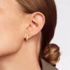 A miniature interpretation of the emblematic Bangle, these go-to earrings feature a sleek, timeless silhouette that moves effortlessly across styles and eras, this design is elevated with the brand’s signature touch — vibrant colored enamel.