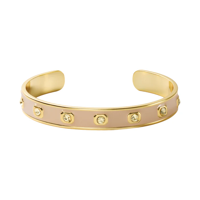GEM Adjustable Enamel and Rhinestones Bangle – Beige Mastic