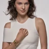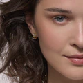 These hoop earrings captivate with their clean, architectural lines — each bar rendered in luminous gold plating or set with sparkling cubic zirconia for a subtle graphic contrast.